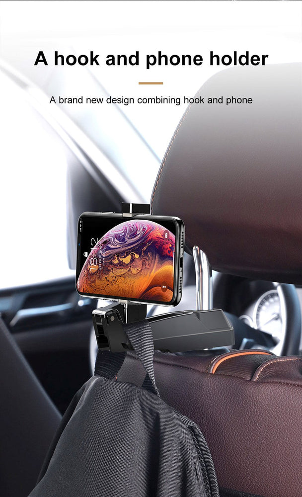 Baseus Backseat Car Mount Til Bilens Nakkestøtte 4.0"-6.5" - Max Mobil: 45 x 85mm - Sort