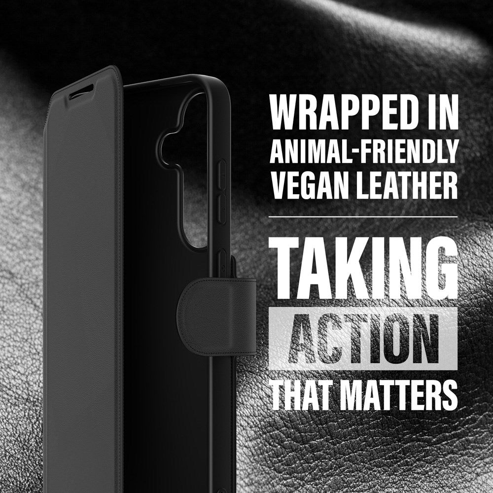 Med dette Samsung Galaxy S25+ (Plus) Feature Wallet Case fra CARE by PanzerGlass får du mode, beskyttelse og funktionalitet i ét produkt! Dette cover til Samsung Galaxy S25+ (Plus) er perfekt til dig, der ønsker at gøre hverdagen nemmere med kortholder og ståfunktion uden at gå på kompromis med hverken beskyttelse eller udseende til din smartphone.