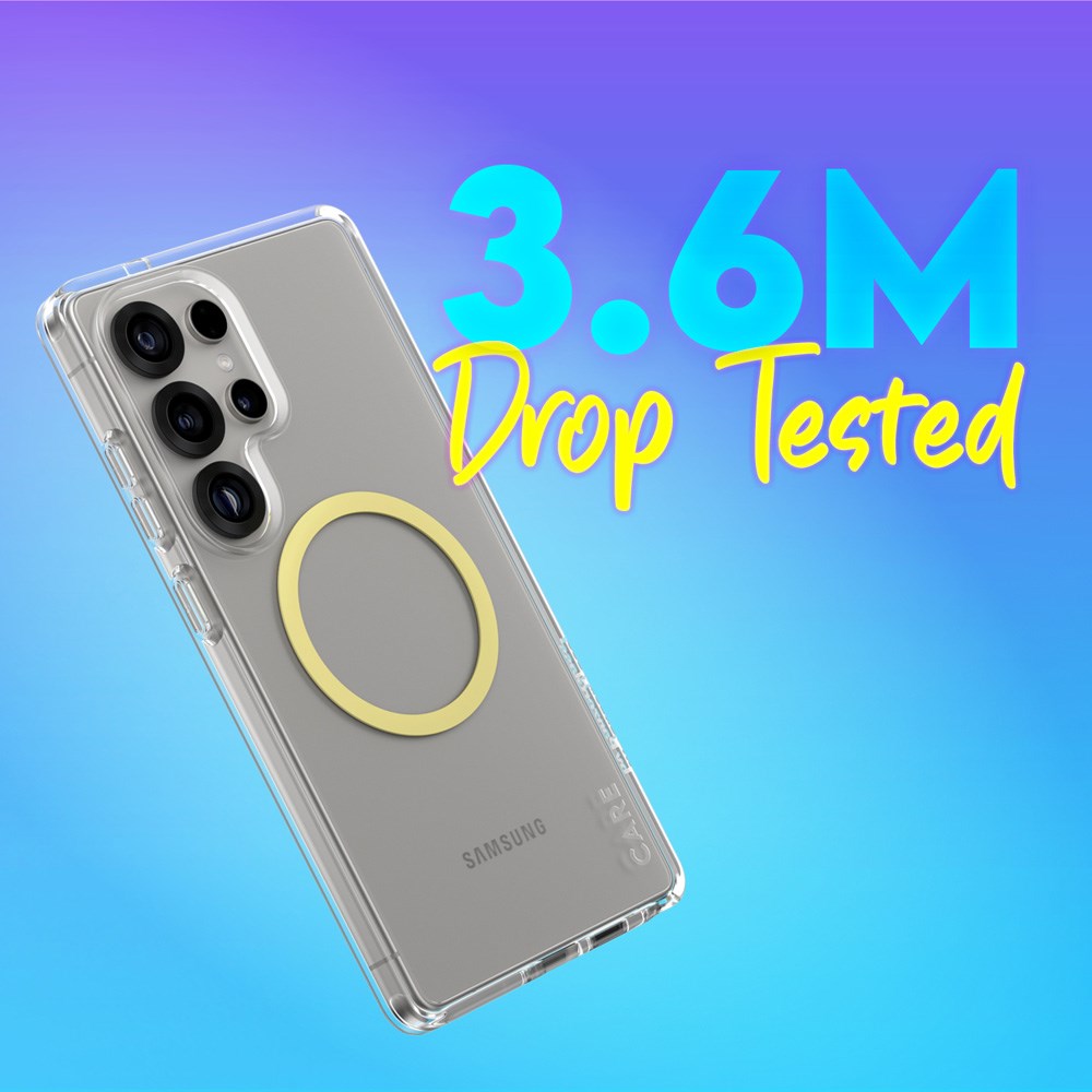 Det ultratynde, men stadig meget stærke cover til Samsung Galaxy S25 Ultra er blevet testet til at modstå fald fra op til 3,6 meters højde på alle hjørner og vinkler og gør sig derfor egnet til alt fra hverdagens udfordringer til træning mm.