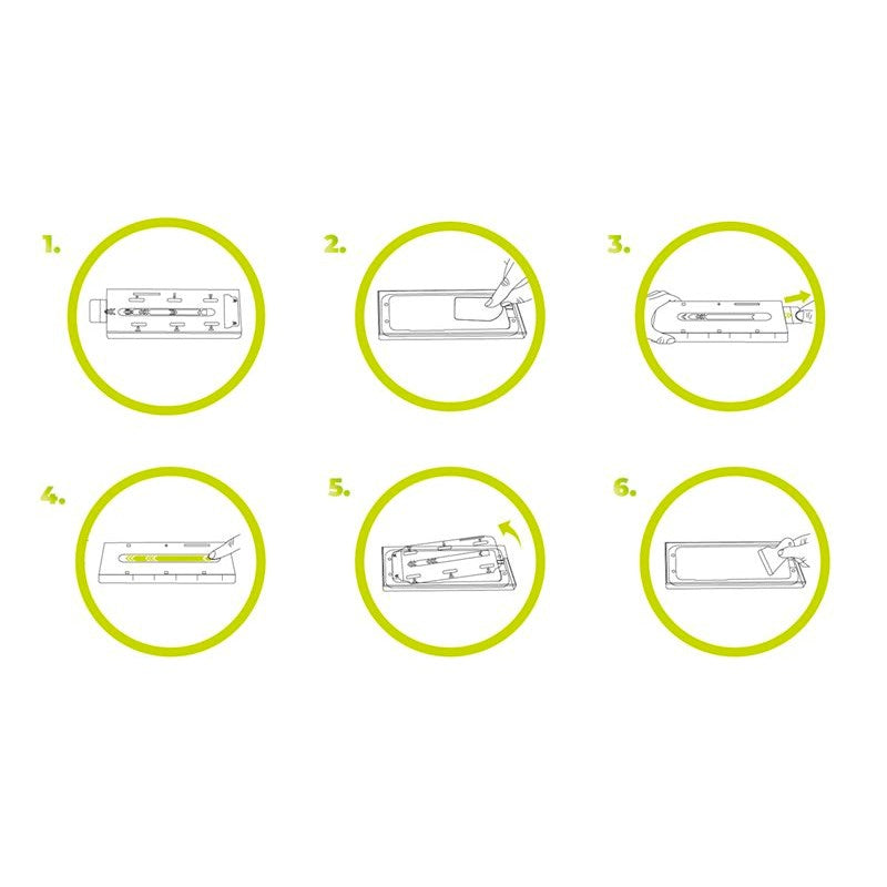 Takket være den smarte monteringskasse er installationen hurtig, præcis og boblefri – selv for begyndere.