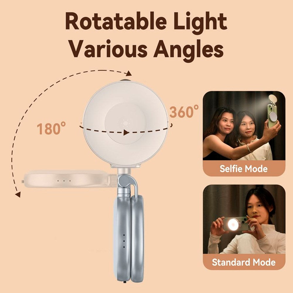Det indbyggede spejl (56mm) gør det let at lægge makeup eller lignende, mens den 360° roterbare lampe giver dig fuld kontrol over lysvinklen. Den kompakte og lette konstruktion (kun 80g) gør den ideel at have med på farten, og med en batterilevetid på op til 500 minutter ved lav lysstyrke, er du sikret langvarig brug uden bekymringer.