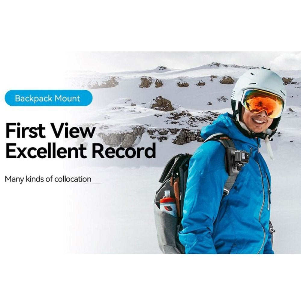 TELESIN har udviklet denne smarte rygsækmontering til action kamera for at muliggøre fede videoer fra unikke vinkler og perfektiver uden behovet for, at du skal holde kameraet i hånden. På den måde kan du frit dyrke din sport og bruge hænderne til andre ting - f.eks. skistave eller styret.