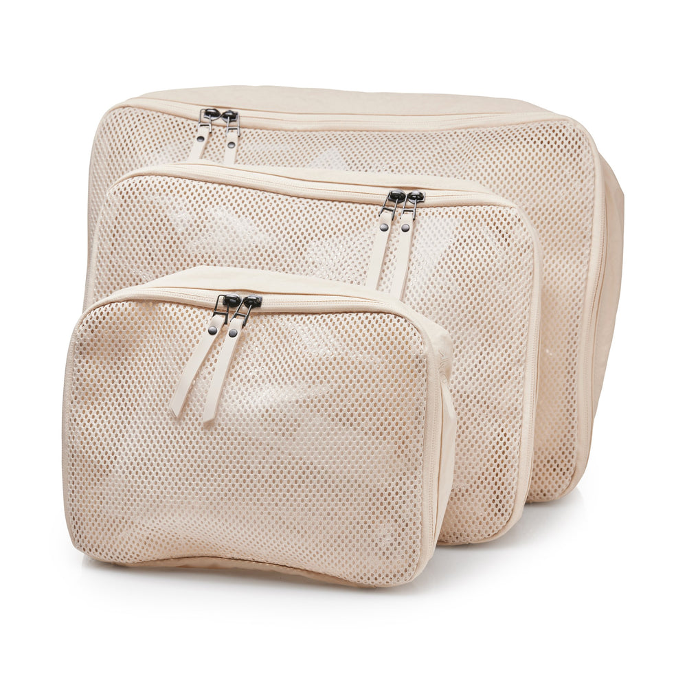 Pakken indeholder tre forskellige størrelser, der gør det nemt at organisere alt fra tøj og sko til toiletsager og andre småting. Det pladsbesparende design giver dig mulighed for at udnytte din kufferts kapacitet optimalt, så du kan pakke mere uden at miste overblikket. Materialet er både let og slidstærkt, og de stærke lynlåse sikrer, at dine ting forbliver sikkert pakket under hele rejsen.