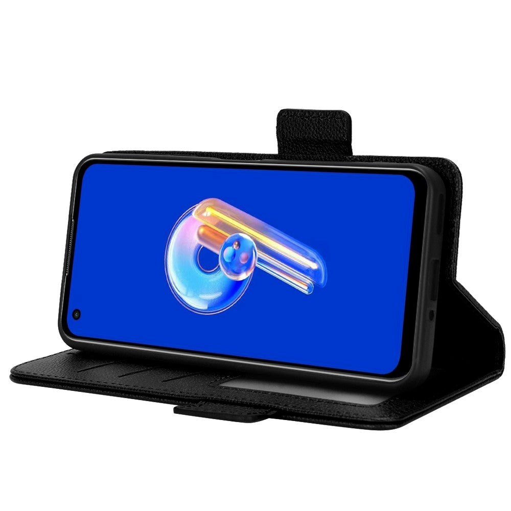 Dette Asus Zenfone 10 / 9 cover er lavet i blank imiteret læder, som giver din mobil et super fint finish. Inde i flip coveret sidder din mobil fast i et fleksibel TPU plastik cover, som er stødabsorberende og giver god beskyttelse mod slag. Der er også 3 kortholdere (1 med vindue) og en stor lomme til kontanter.