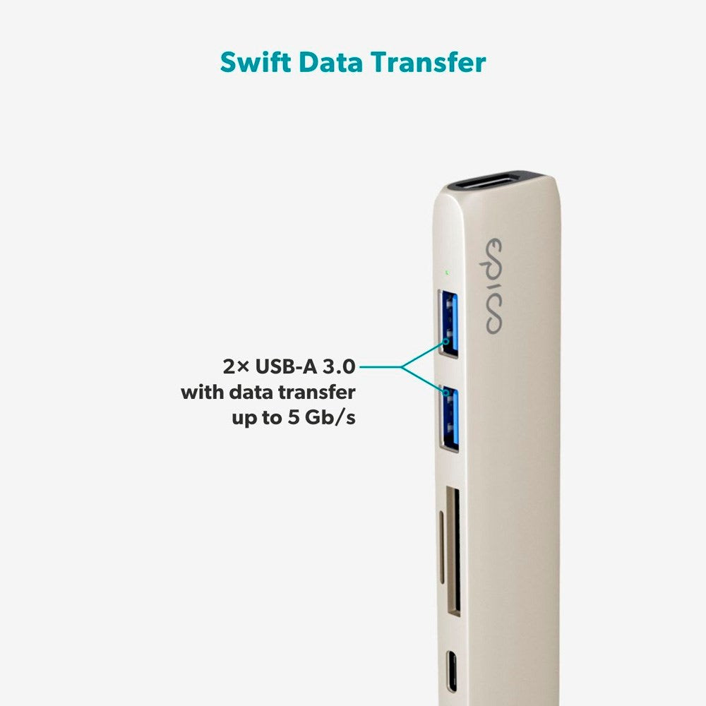 Få maksimal tilslutning og høj ydeevne med Epico 6-i-1 Aluminium Hub 8K – den perfekte løsning til både arbejde og underholdning. Med seks essentielle porte – HDMI, USB-C Power Delivery, to USB-A-porte samt SD- og MicroSD-kortlæser – får du alt, hvad du behøver for at udvide funktionaliteten på din enhed.