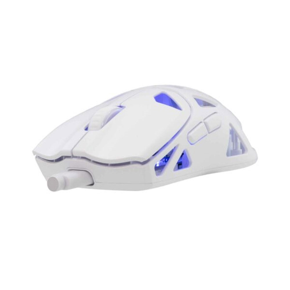 Med en vægt på kun 50 gram er denne mus en af de letteste på markedet, hvilket minimerer træthed og giver mulighed for hurtige, ubesværede bevægelser. Musen er udstyret med 6 knapper, som kan tilpasses via den medfølgende software, så du kan skræddersy funktionerne til din spillestil. UPE-puderne på undersiden sikrer et jævnt og kontrolleret glid på de fleste overflader.