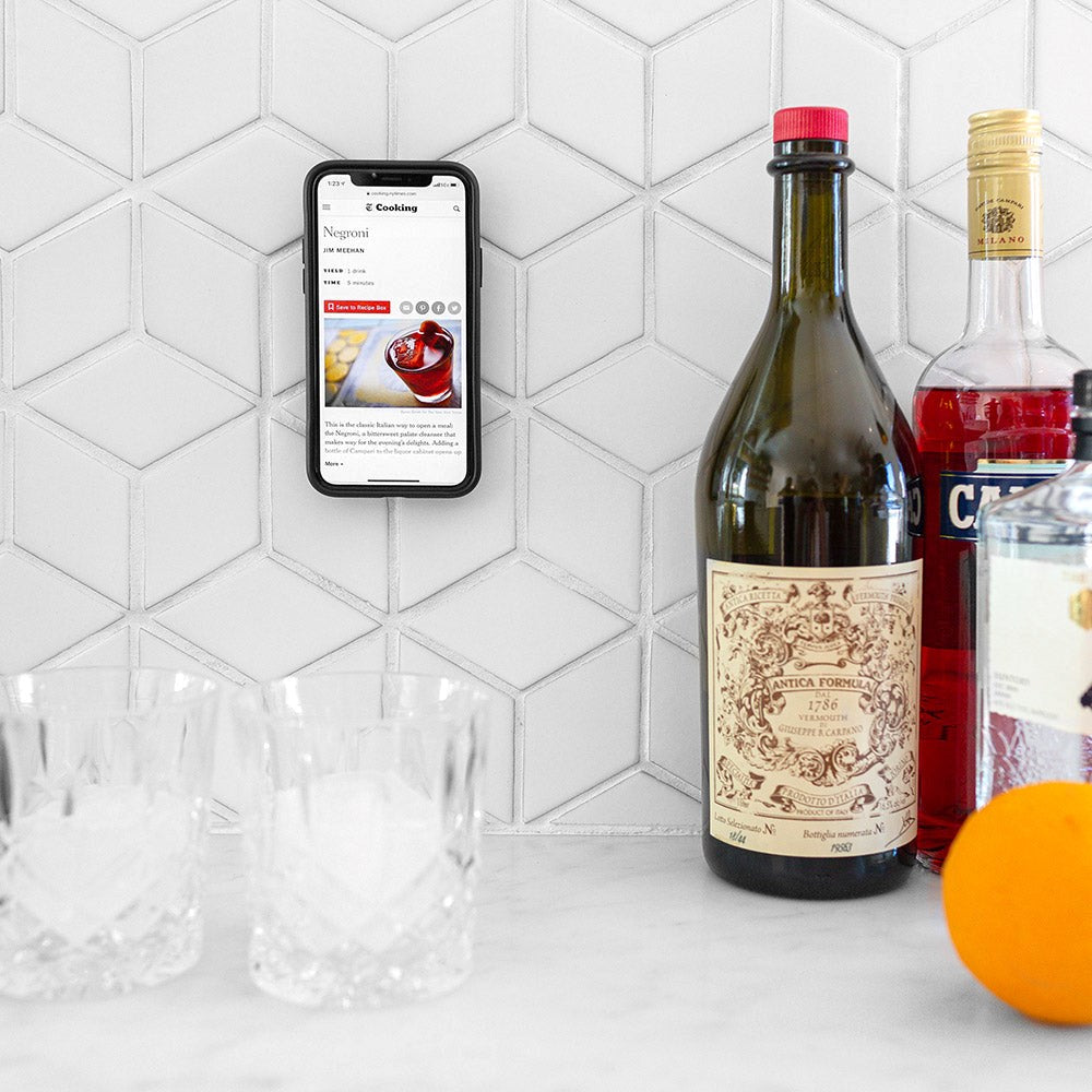 Der er ingen grænser for hvor du kan hænge denne mobilholder. Det kan være i køkkenet for at læse opskrifter, på vægen ved siden af sengen, videoopkald i værkstedet eller et helt andet sted.