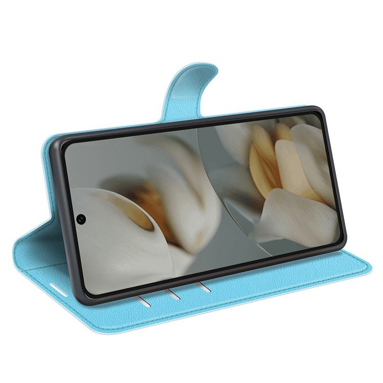 Coveret er lavet af topkvalitets kunstlæder med en elegant Litchi-tekstur, og indvendigt er det forstærket med fleksibelt plastik, som sikrer både stil og holdbar beskyttelse af din mobil.