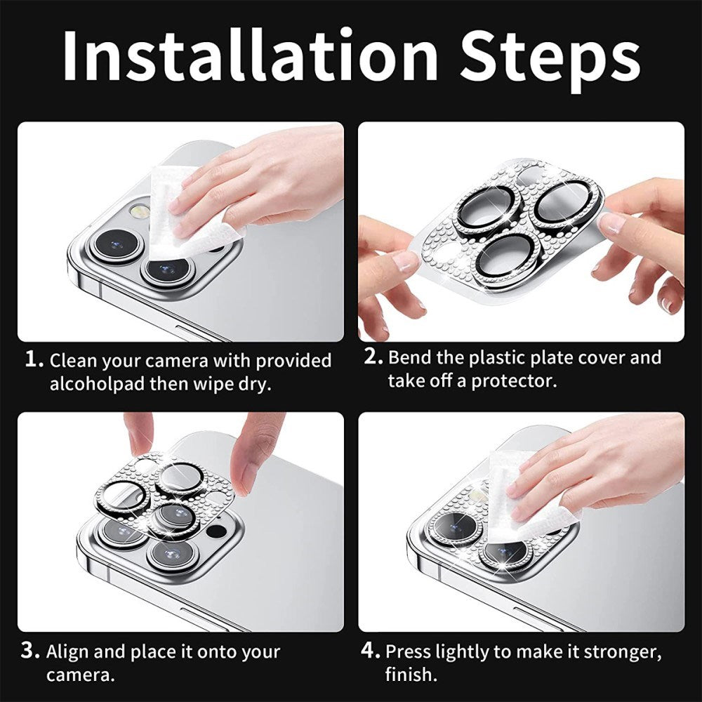Dette beskyttelsesglas til kameralinse er en blanding af en plastik og hærdet glas som beskyttelser hele kameraområdet på din iPhone 16 Pro / 16 Pro Max. Denne kamerabeskyttelse er dekoreret med farvet rhinsten, og som vil give din telefons kameraudsnit et unikt udseende.