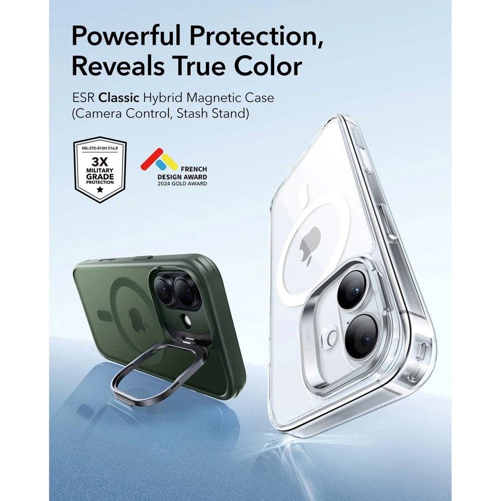 Her er et cover til iPhone 17, der både beskytter din smartphone, samtidig med at funktionaliteten og komforten øges! ESR Classic Hybrid Stash Case har nemlig en integreret kickstand, der kan foldes ud, således telefonen kan stå af sig selv - perfekt til videomøder eller film og serier på farten.