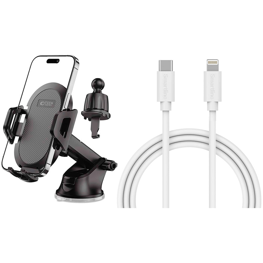 En god kør-selv-ferie pakke der indeholder både mobilholder til bil og USB-C til Lightning Ladekabel. Derved skaber du nemt en smartphone ladestation i din bil, så kan nu nemt have GPS'en kørende hele turen.