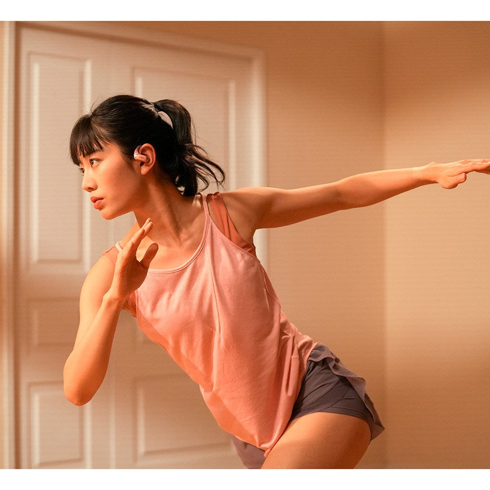 Ved at droppe det traditionelle In-Ear design og erstatte det med det specielle OpenFit design kan du nyde en god musikoplevelse samtidig med at du vil kunne være mere opmærksom på omverdenen omkring dig. Med et åbent øredesign tillades der at lyden får lov til at passere frit gennem øregangen, som sikrer en mere naturlig lytte oplevelse. Designet er især egnet til dem der ønsker at nyde musik og opkald, samtidig mens du er forholder dig aktiv, fx på løbe- eller cykelturen.