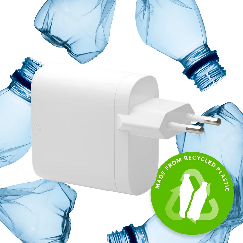 Vægopladeren er lavet af 100% GRS-certificeret genbrugsplast og er 100% genanvendelig. Den er fremstillet med GaN-teknologi, som betyder, at den er mindre og mere kraftig end de traditionelle vægopladere. Strømforsyningen bliver derved mere effektiv, som resulterer i mindre spildvarme og lavere energiforbrug - der er derfor ingen grund til ikke at vælge denne vægoplader fra dbramante1928, hvis du værner om miljøet og ønsker kvalitet og funktionalitet på højeste plan.