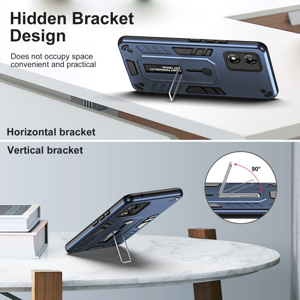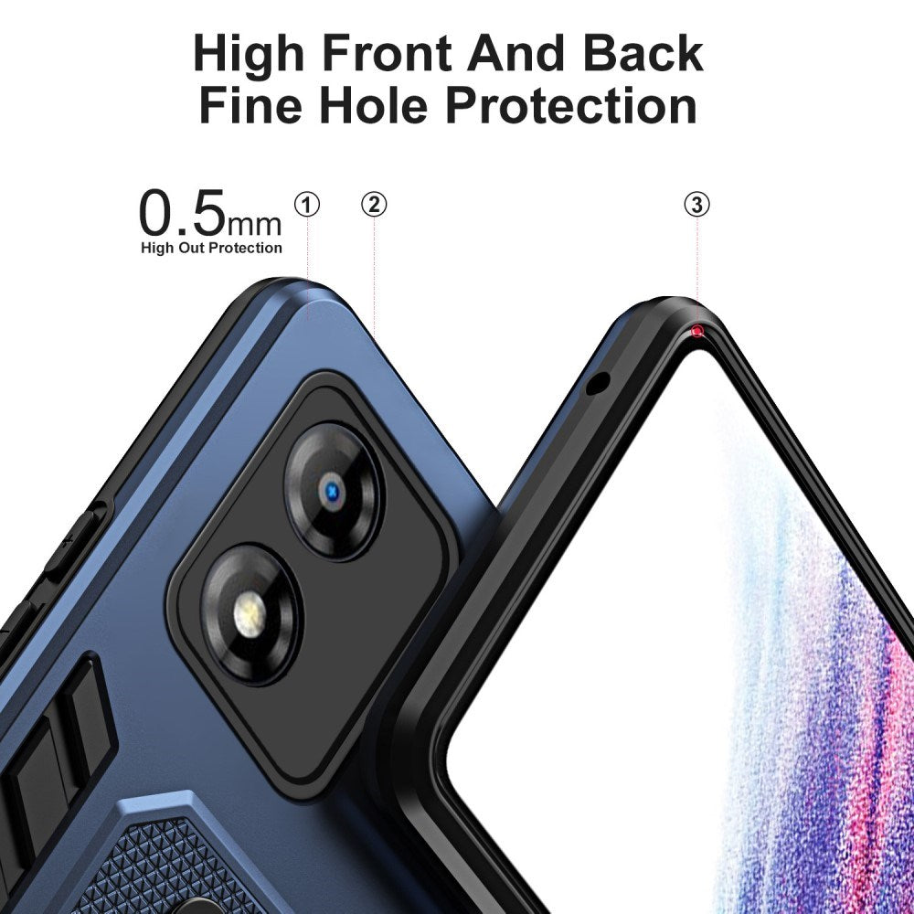 Smart håndværkercover til Motorola Moto E13, der giver en robust beskyttelse imod ridser, slag og tab af din telefon. På bagsiden finder du både en smart metal kickstand, men også en silikone fingerring. Brug den indbyggede kickstand når du skal se film eller serier, samt fingerringen når du skal forbedre dit greb.