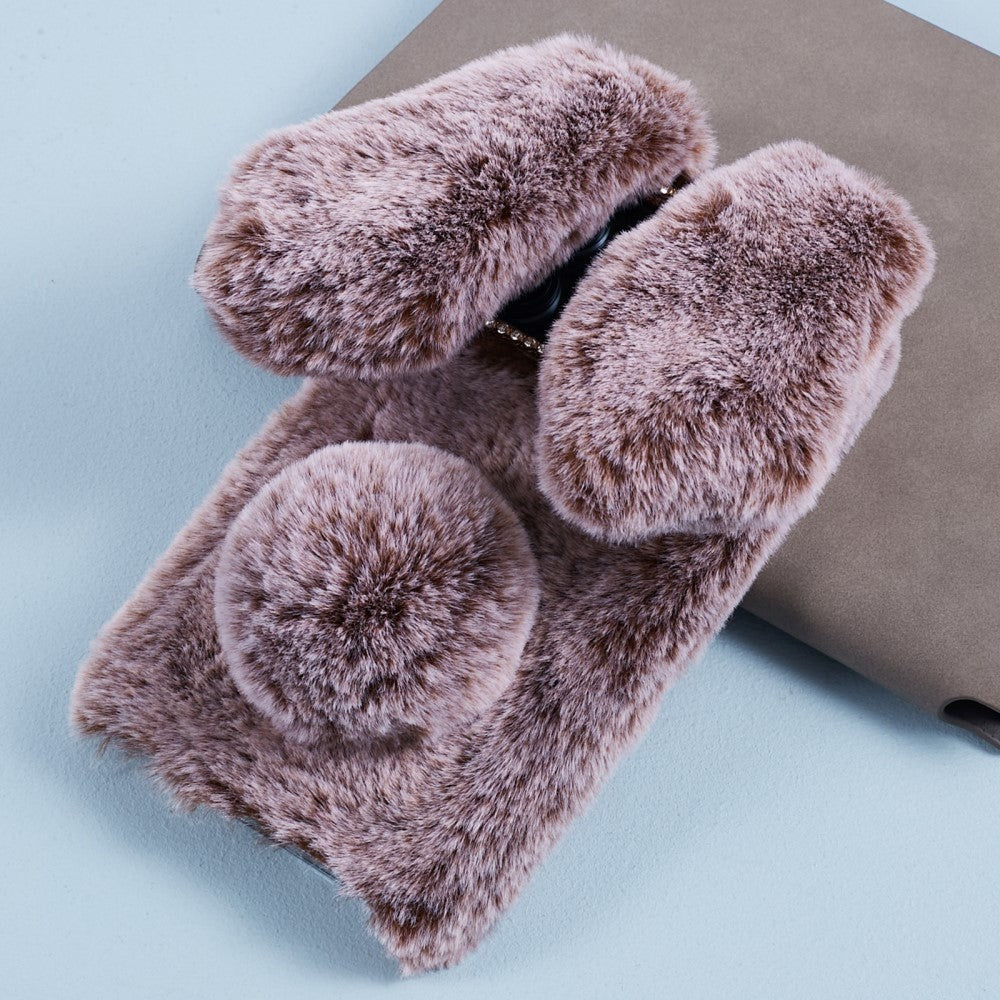 iPhone 15 Pro Fleksibelt Plastik Cover m. Pels - Kaninører - Brun