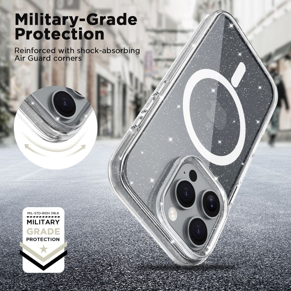 iPhone 16 Pro Max Tech-Protect Flexair Hybrid Cover - MagSafe Kompatibel - Gennemsigtig / Glitter