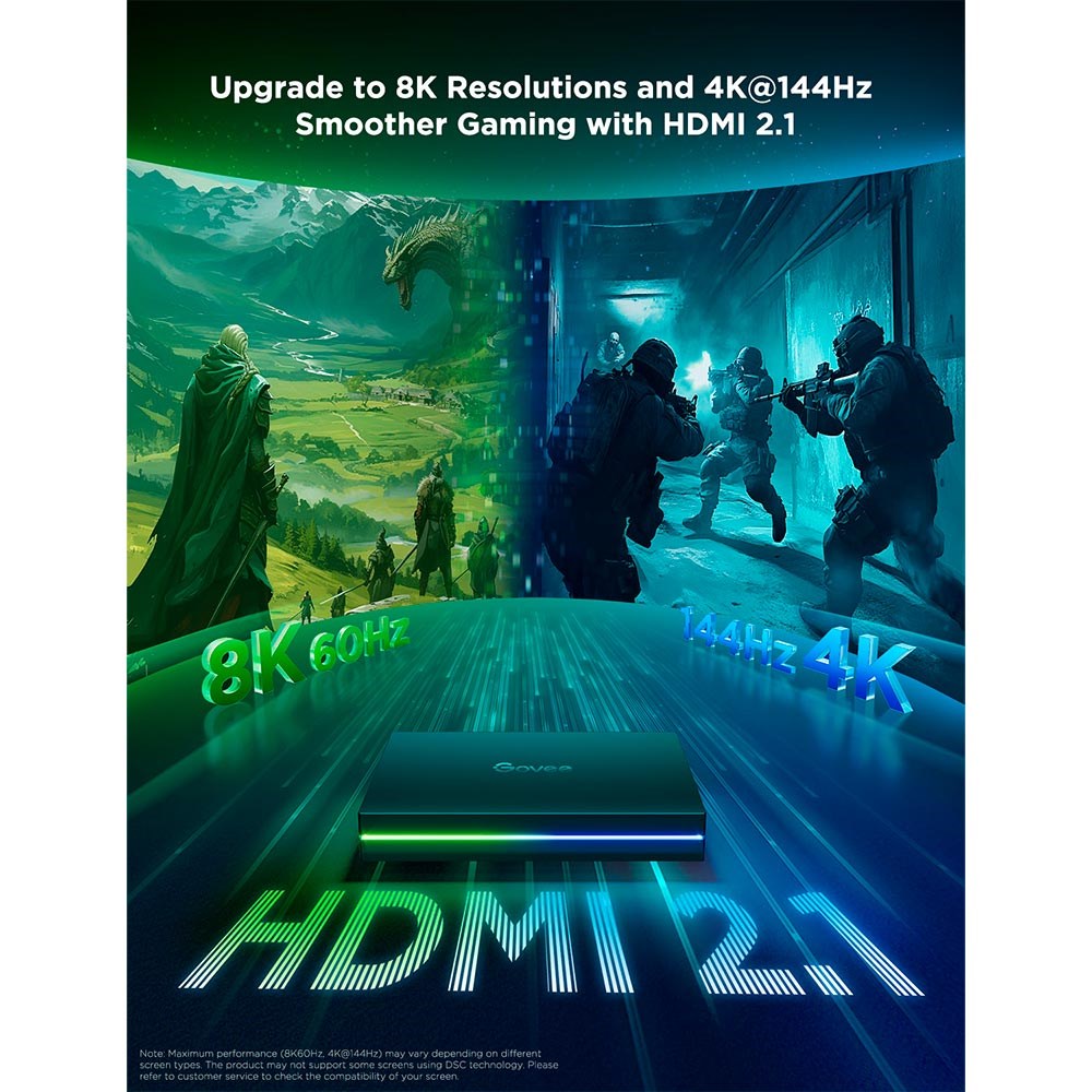 Tag din gaming- og TV-oplevelse til nye højder med Govee AI Sync Box 2 - 55-65". Udstyret med avanceret HDMI 2.1 og banebrydende AI-teknologi skaber denne enhed en uovertruffen, levende og responsiv underholdningsoplevelse.