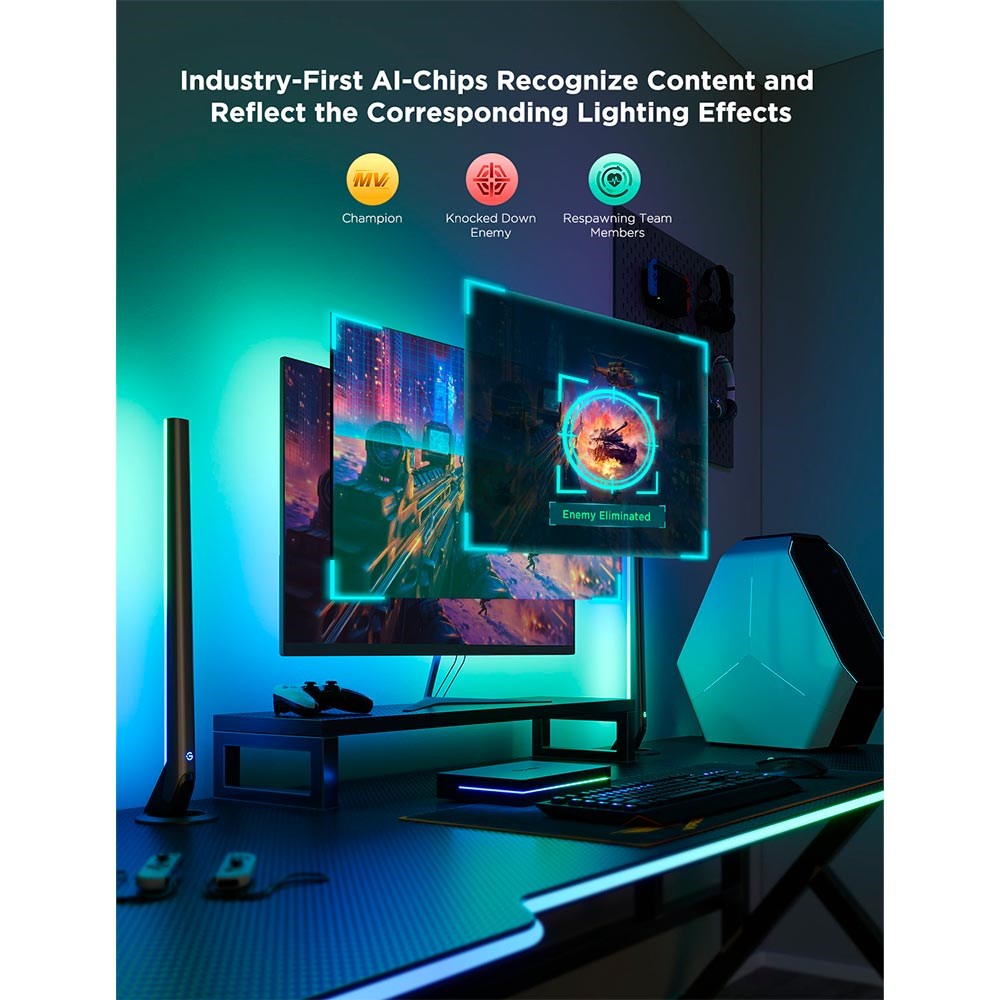 Den indbyggede AI lærer af videoinhold og udløser dynamiske, fordybende lyseffekter i realtid, der matcher handlingen på skærmen.