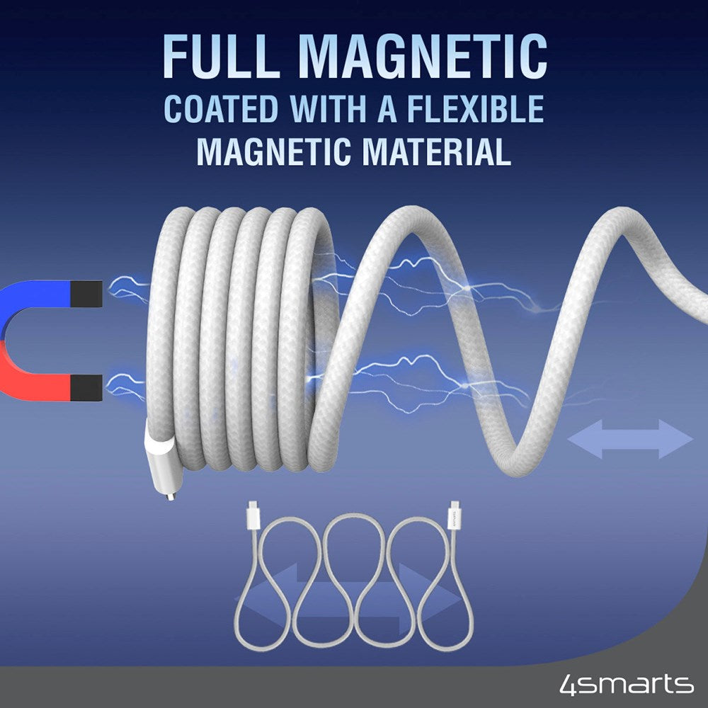 Med 4smarts Magnetisk RollUp USB-C til USB-C Kabel 100W PD er dage med sammenfiltrede kabler fortid. Takket være de integrerede magneter kan du nemt rulle kablet sammen og være sikker på, at det forbliver pænt og organiseret. Slut med at lede efter det rigtige kabel i kaos - hold dit arbejdsområde ryddeligt og organiseret med dette smarte kabel.