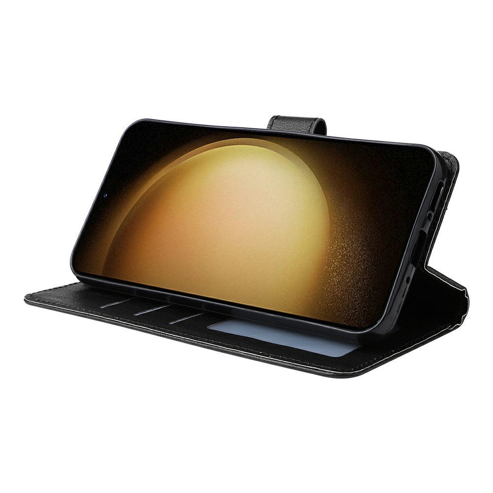 Et flot klassisk læder flip cover til Samsung Galaxy S25+ (Plus) / S24+ (Plus) der både giver din mobil en god beskyttelse og et godt look. Dette mobilcover er lavet af kunstlæder af god kvalitet, som er meget behageligt at holde omkring.