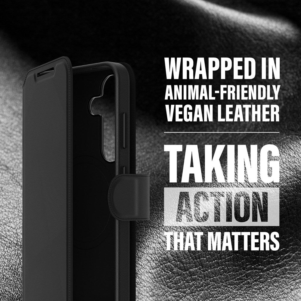 Flipcoveret til Samsung Galaxy S25 er fremstillet i kunstlæder for et klassisk og stilrent look. På indersiden er der desuden lavet plads til 4 kort, så du kan have det vigtigste med på farten. Den indvendige del af coveret, der kan bruges separat som sit eget cover, er lavet i genanvendt plastik. De to covers sidder sammen ved hjælp af en stærk magnet, og det er på den måde utrolig nemt at på- og afmontere plastikcoveret, som det passer en. Flipcoveret lukkes ligeledes med en kvalitetsmagnet.