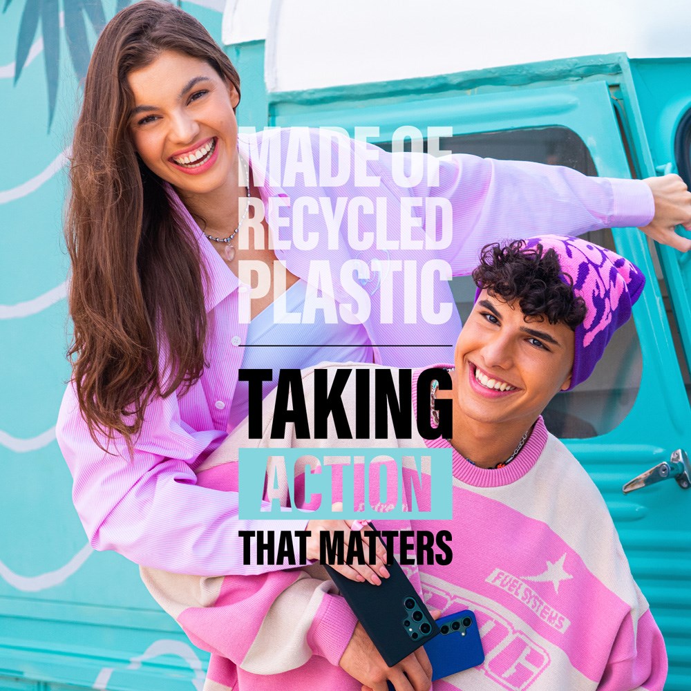 Det topmoderne og stilrene cover er lavet i 100% genanvendeligt plastik og har en garanti på 1 års anti-yellowing, så dit gennemsigtige look til din Samsung Galaxy S25 holder sig klart.