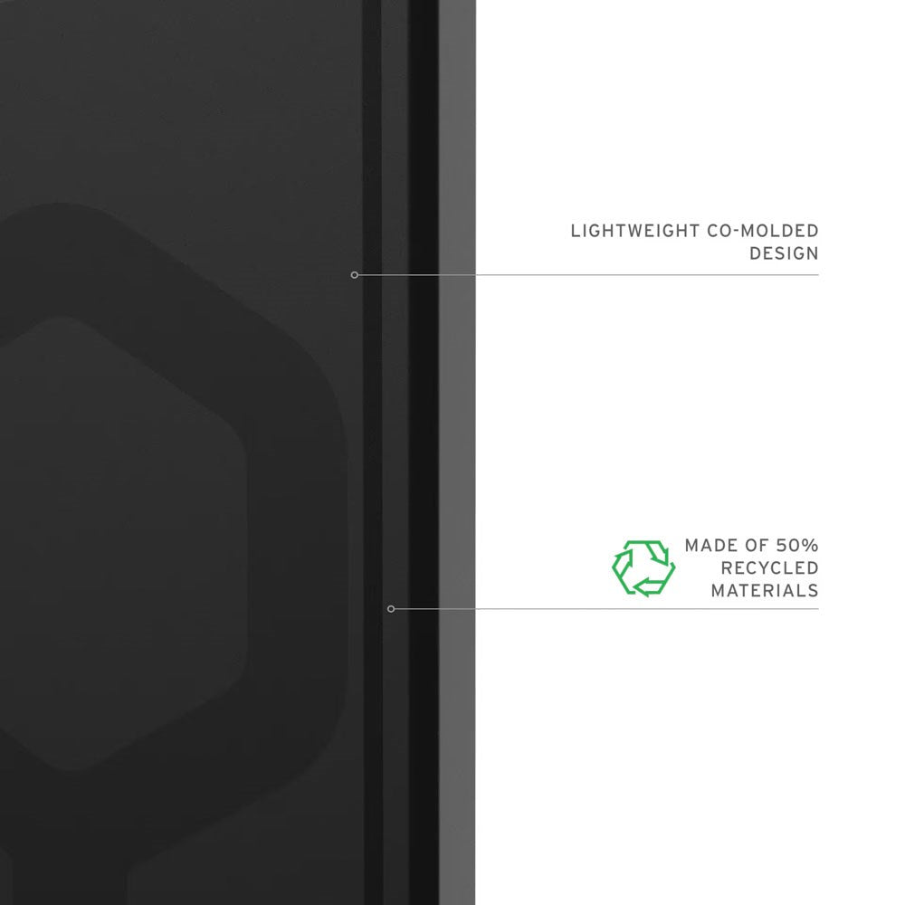 Coveret har en indbygget MagSafe-magnet, som gør det kompatibelt med trådløs opladning og magnetisk tilbehør. Designet kombinerer styrke med fleksibilitet, mens de forstærkede hjørner og den hævede kameraramme beskytter mod stød og ridser.