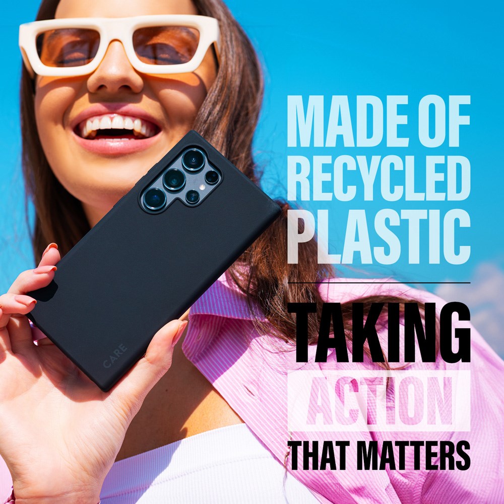 I dette Samsung Galaxy S25 Ultra cover får man både solid beskyttelse og et klassisk, stilrent design. CARE by PanzerGlass har fremstillet coveret i genanvendt fleksibelt plast og givet det en blød, mat overflade, der føles behagelig i hånden.