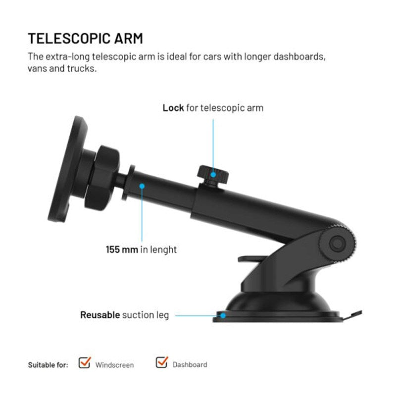 Oplev den ultimative bekvemmelighed med denne magnetiske mobilholder til bil med trådløs opladning fra Fixed. Holderen er designet til at monteres i bilens forrude eller på instrumentbrættet - alt efter dine præferencer og behov.
