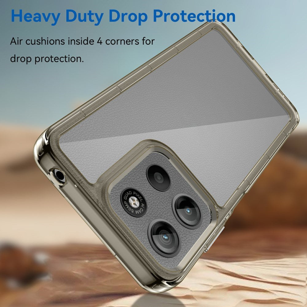 Et gennemsigtigt cover til Motorola Moto G15 / G05 / E15 med en ramme, der er produceret til at være stødabsorberende ved tab. Dette er coveret til dig, som vil give din telefon god beskyttelse mod ridser og skader på den mest diskrete måde.