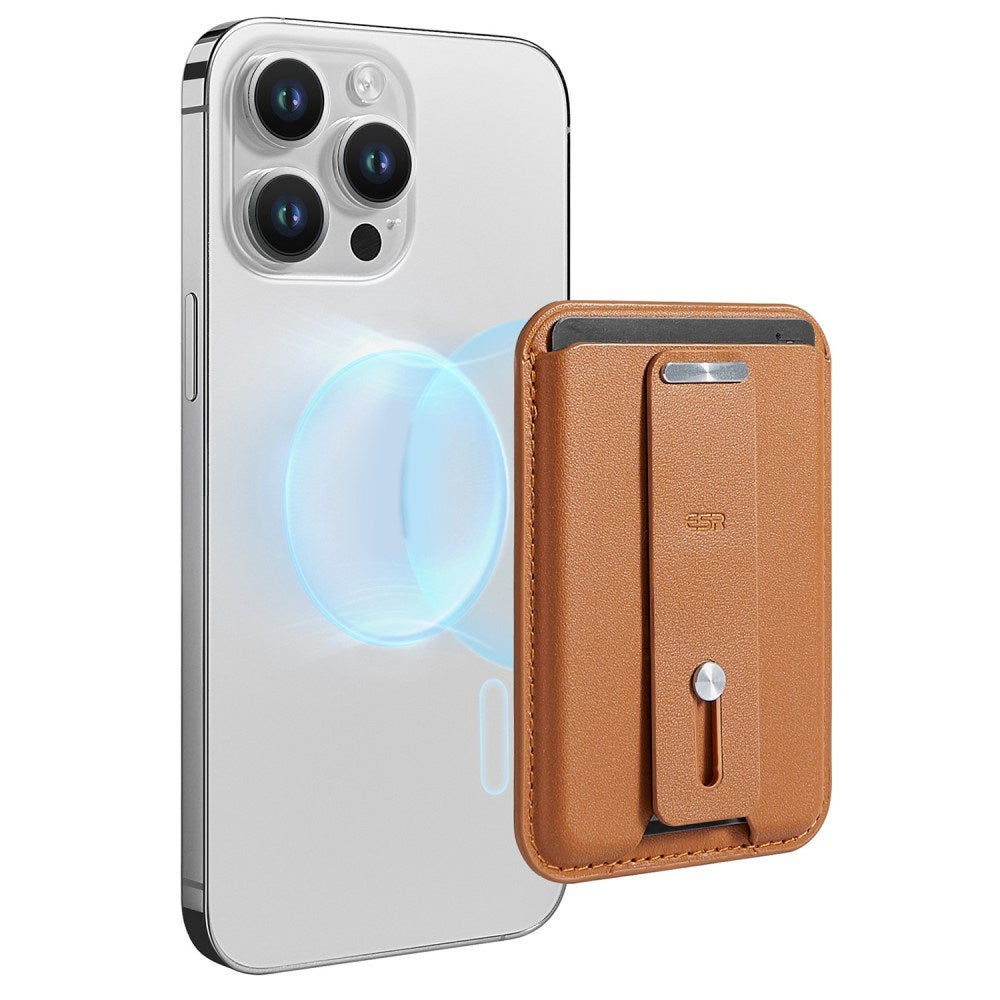 En super flot og smart kortholder m. strop og ståfunktion fra det velkendte ESR. Denne ESR MagSafe kompatibel kortholder kan både bruges med MagSafe kompatible enheder og covers. Kortholderen er fremstillet i kunstlæder som giver et stilrent og enkelt design, som pynter godt på telefonen bagside. Den indbyggede strop der fungerer som stander kan både holde din mobil vertikal til når der læses mails eller horisontalt til når der streames. Med stroppen vil du desuden altid kunne have et godt greb om mobilen og din kortholder.