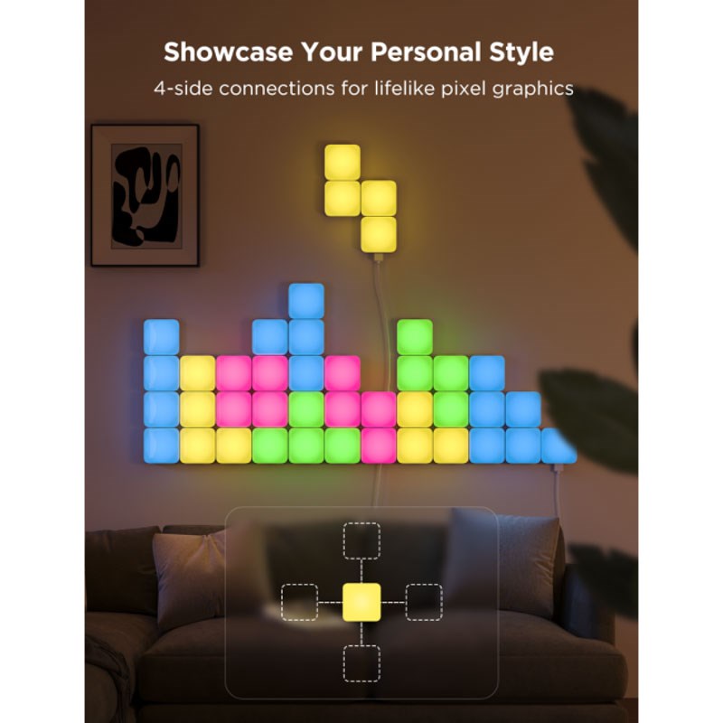 Hvad end du ønsker at hænge disse paneler op i stuen, på børneværelset eller måske over din gamer-computer, så har du mulighed for det. Der følger i denne pakke 10 stk. med, men du kan samle op til 70 af de individuelle lyspaneler på samme tid til én form. Panelerne er designet således, at de alle har mulighed for at sættes sammen på alle fire sider, og det er altså derfor kun fantasien, der sætter grænser for, hvad man kan fremstille af forskellige designs og former med disse Govee Mini Panel Lights.