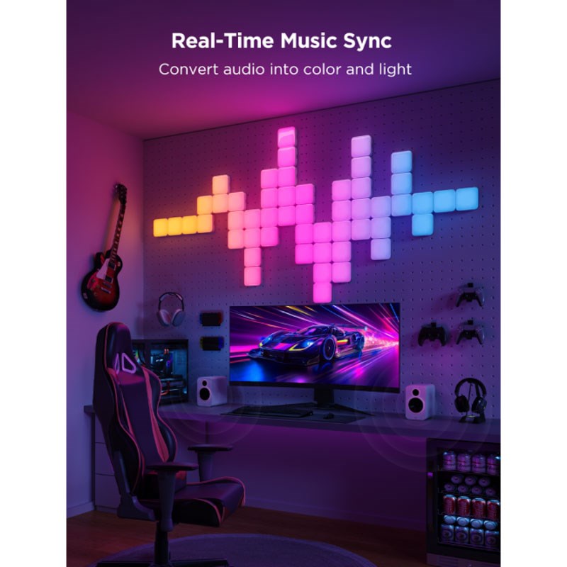 Govee har designet disse paneler med en 3D udformning, for på den måde at gøre lyset mest muligt dynamisk. Den indbyggede RGBIC (Red Green Blue Integrated Circuit) giver dig flest mulige farvekombinationer og mest mulig kontrol over de enkelte lyspaneler.