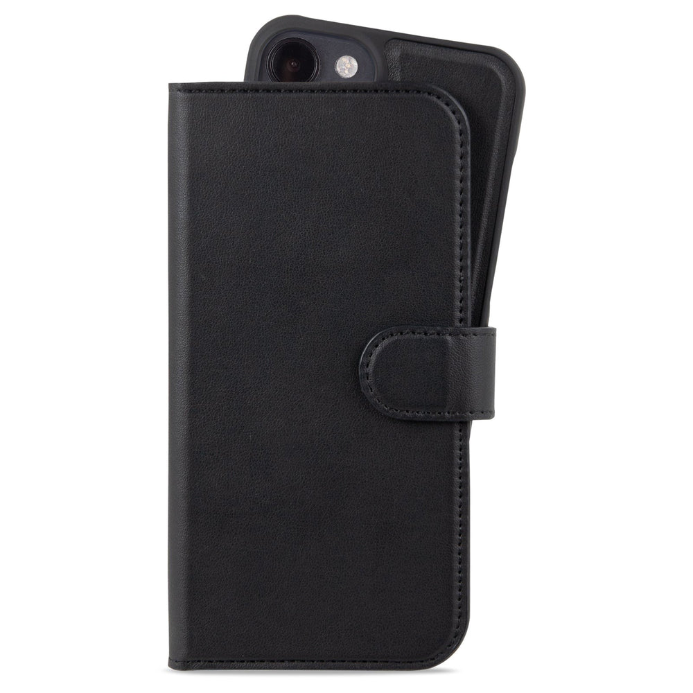 Dette iPhone 14 / 13 cover er femstillet i vegansk læder i premium-kvalitet, hvilket giver coveret en lækker overflade, der er yderst behageligt at holde omkring. Coveret er beklædt med en finere tekstur af imiteret læder, mens det indeni er beklædt med blød mikrofiberforing, som beskytter optimalt mod ridser. Når coveret åbnes sidder der i den ene side et almindeligt plastik cover med imiteret læder bagside, hvori mobilen placeres. Dette cover holdes på plads vha. kraftig magnet. Denne magnet gør, at coveret er aftageligt, og du kan derfor bruge det som et almindeligt bagcover til iPhone 14 / 13. Det er altså et 2-i-1 cover, som du kan bruge som du vil.