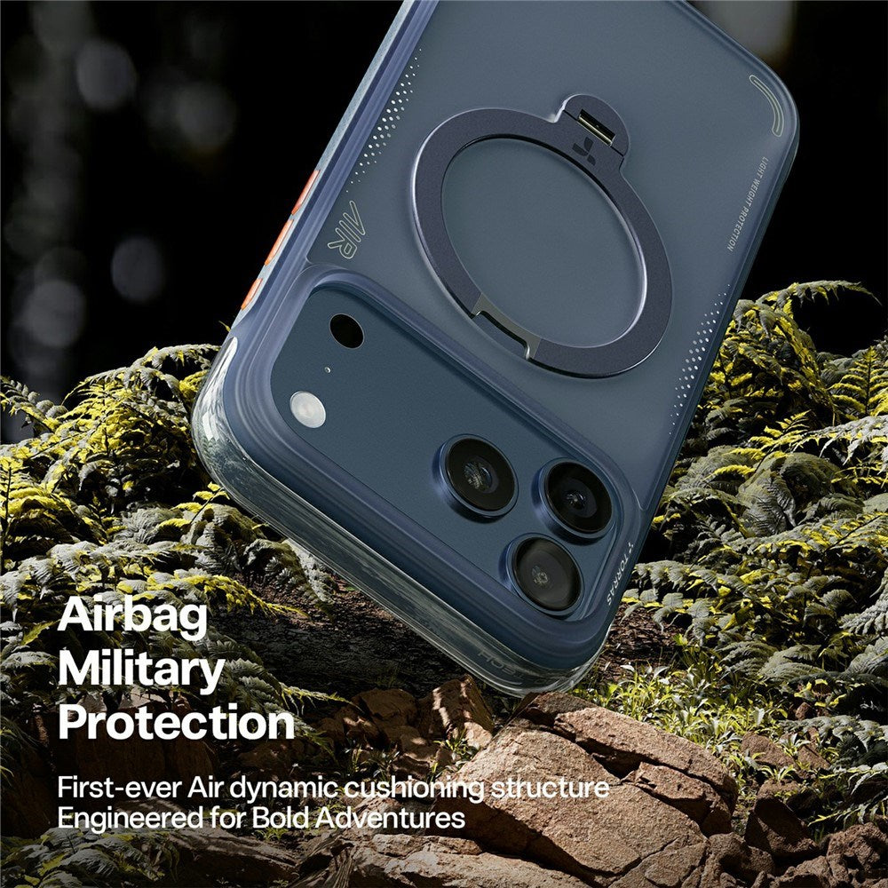 Dette TORRAS Ostand Q3 Air cover til iPhone 17 Pro Max er konstrueret med en hybridstruktur af hård plastik, fleksibelt plastik og metal, hvilket skaber en robust beskyttelse mod hverdagens strabadser. Designet fokuserer på at levere avanceret funktionalitet og stødabsorbering i en slank profil, der bevarer telefonens funktionalitet.