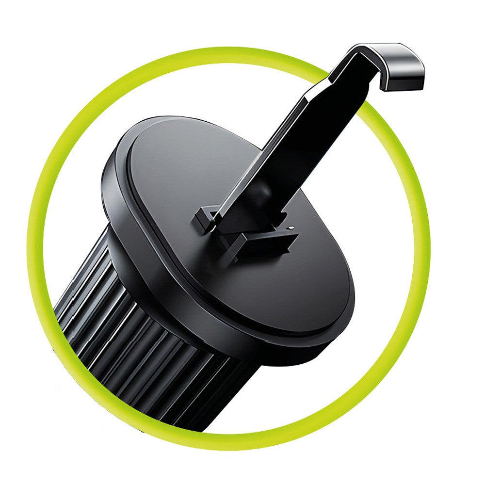 Holderen er fremstillet af en aluminiumslegering og anvender stærke magneter til at fastholde telefonen sikkert. Den magnetiske forbindelse sikrer, at enheden forbliver på plads, selv under kørsel.