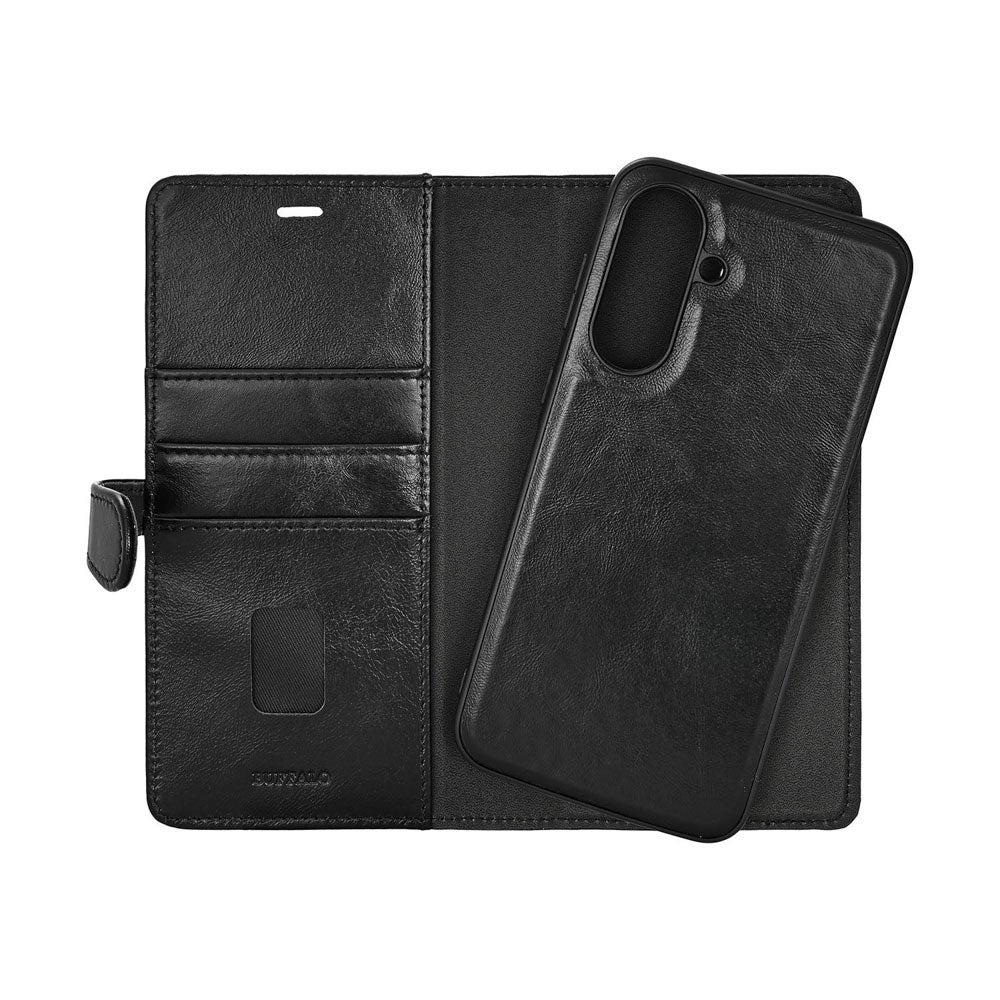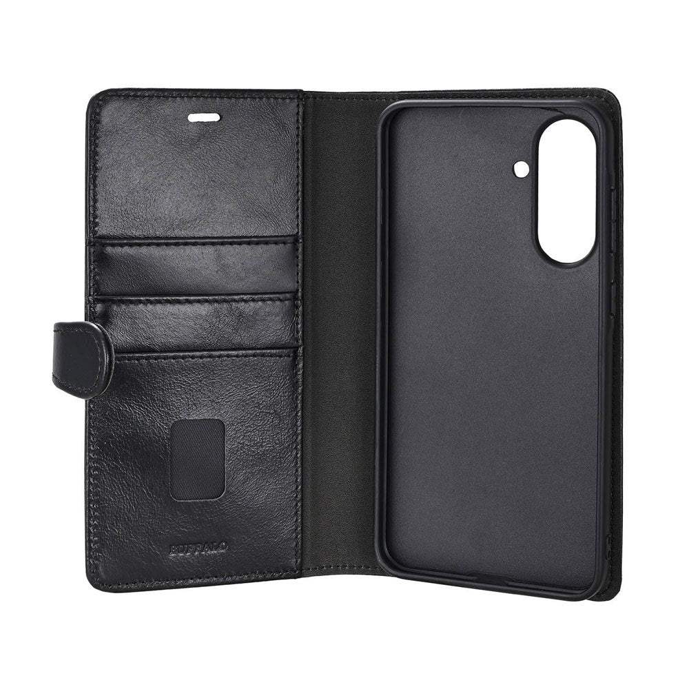 Giv din Samsung Galaxy A37 et eksklusivt og tidløst look med dette Buffalo 2-i-1 Ægte Læder Flip Cover. Dette wallet-cover er fremstillet af fuldnarvet anilinlæder, som både føles luksuriøst og yder optimal beskyttelse i hverdagen. Designet med fokus på kvalitet, funktionalitet og æstetik.