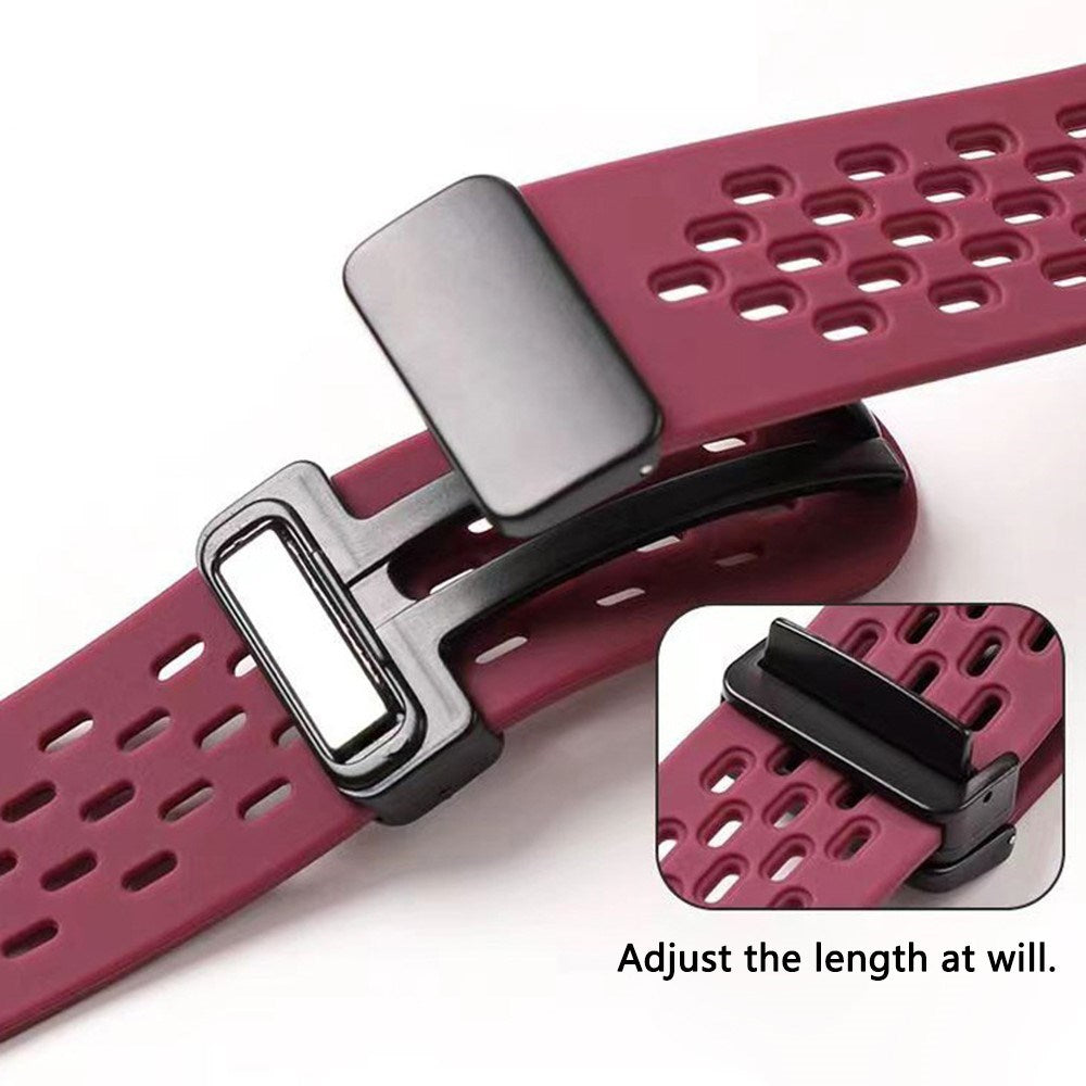 Remmen indstilles nemt vha. af en spænde der kan justeres med magnetisme. Den er diskret og stilfuld, og hullerne i remmen medfører, at man kan ånde så selv på varme sommerdage er den behagelig at have på.