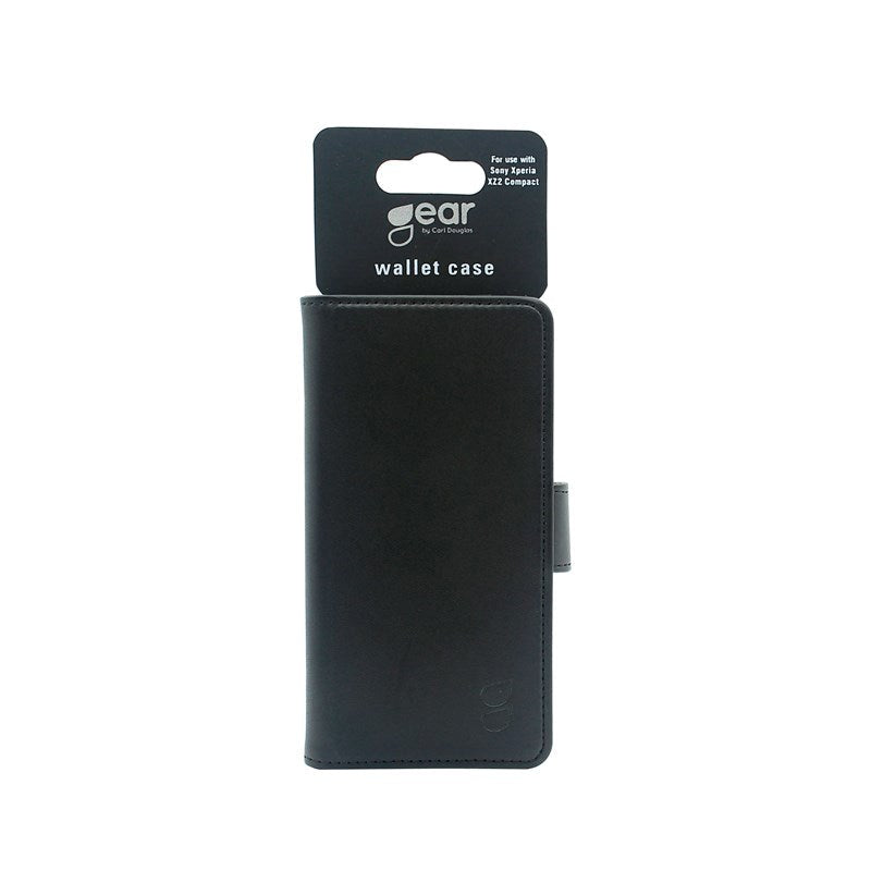 Flot og smart sort etui med pung til Sony Xperia XZ2 Compact fra GEAR, som er lavet i imiteret læder, både ser godt ud og giver fremragende beskyttelse til mobilen.