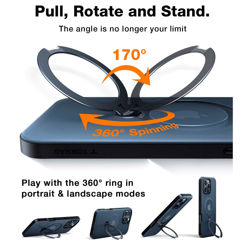 TORRAS iPhone 16 Pro Max Hybrid Plastik Cover m. Ståfunktion - MagSafe Kompatibel - Sort