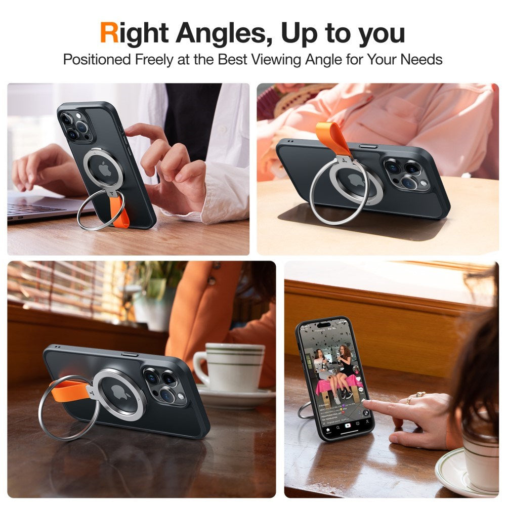 Bred Kompatibilitet: Designet til at fungere med MagSafe-kompatible covers og cases. Til ikke-magnetiske covers medfølger en metalring, der nemt kan fastgøres, så du også kan nyde kickstand og greb-funktionalitet.