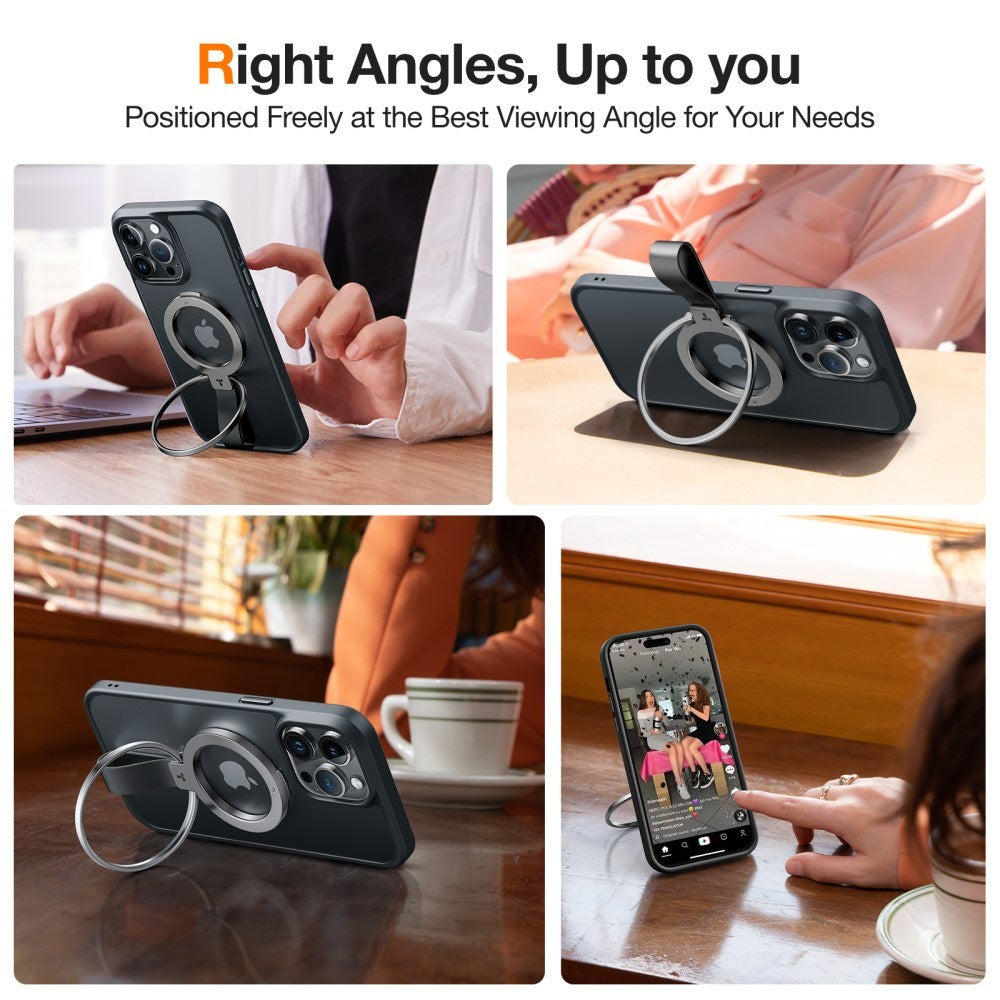 Bred Kompatibilitet: Designet til at fungere med MagSafe-kompatible covers og cases. Til ikke-magnetiske covers medfølger en metalring, der nemt kan fastgøres, så du også kan nyde kickstand og greb-funktionalitet.