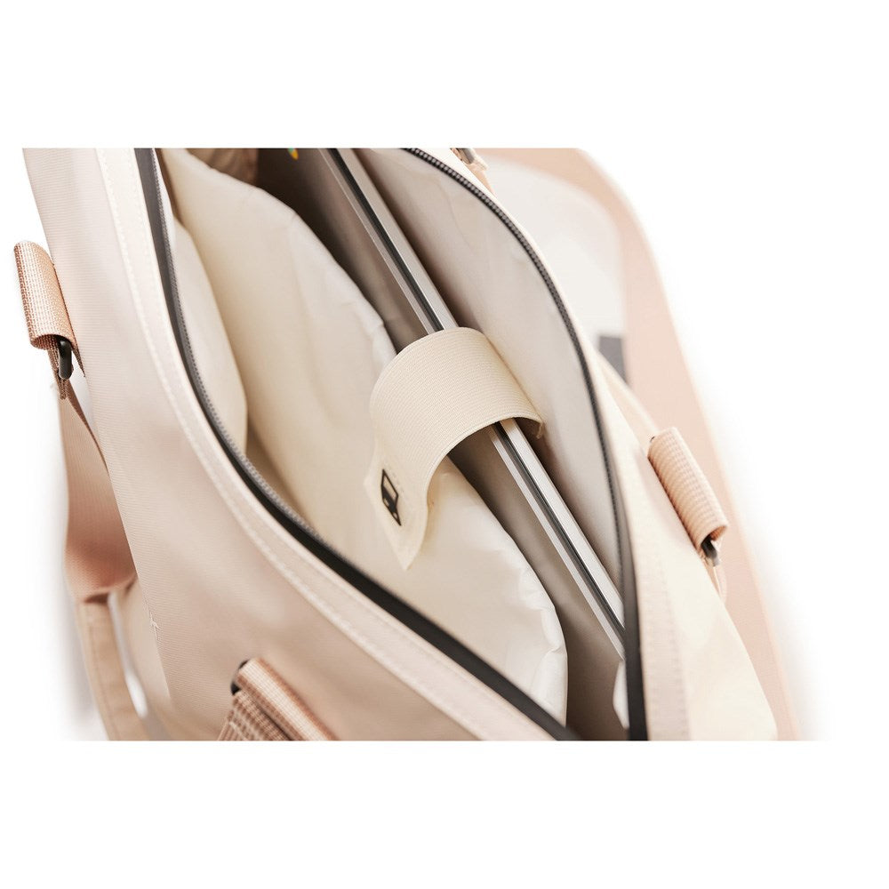 Tasken er fremstillet i et vandafvisende materiale, og kombinerer holdbarhed med et stilrent design, så tasken passer til enhver lejlighed.