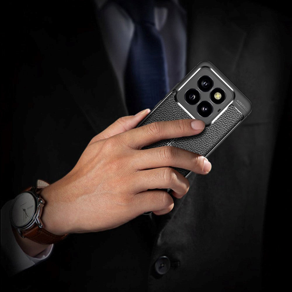 Dette Xiaomi 14 Pro cover har en tekstur af læder på bagsiden. Coveret er lavet i fleksibelt plastik, som virker stødabsorberende ved pludselige tab af telefonen. Herudover modvirker plastik coveret også misfarvning samt almindelig slitage som følge af hverdagsbrug.