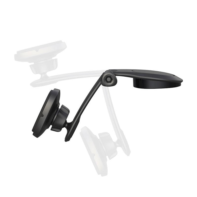 Holderen er udstyret med seks indbyggede neodymmagneter, der sikrer et fast greb om telefonen, selv på ujævne veje. Konstruktionen af hård plast, silikone og metal bidrager til en stabil montering af enheden.